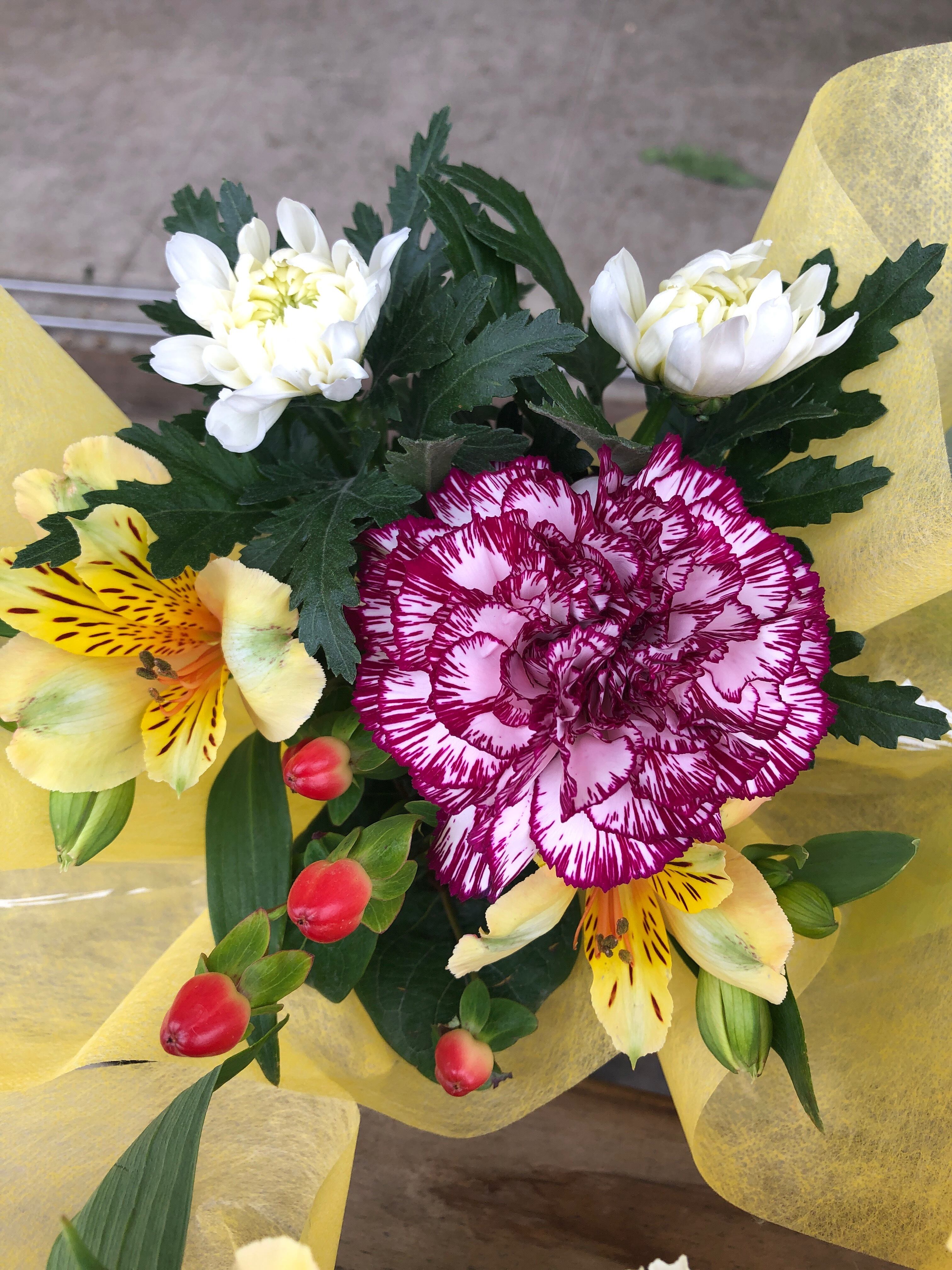 種類はお任せとなりますが、可愛いミニアレンジをお届けいたします。